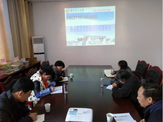 2017年12月25日,在经法学院学科会议室,我校汉江学者,西安交通大学领军学者、博士生导,国务院政府特殊津贴享受人员,陕西省“三秦学者”特聘教授师李国平教授来校指导学科与团队建设。应用经济学校级重点学科和区域经济学校级科技创新团队负责人胡仪元教授介绍了学科和团队2017年的成绩和发展设想。随后分两个阶段进行了国家社科基金项目开题和“陕南脱贫攻坚路径与对策研讨”。