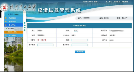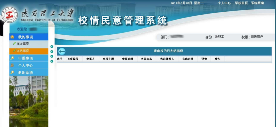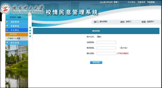 陕西理工大学校“校情民意”管理系统是学校党政利用网络平台为师生员工开通的反映诉求、建议和意见的渠道,旨在“倾听民意、汇集民智、解决问题、监督执行、公开校务”,是集网上公开受理、公开办理、公开反馈和公平评价的管理服务平台。平台通过师生对所提问题办理情况进行满意度评价,有效监管和推动职能部门工作,以提高管理质量和服务水平,切实维护师生的根本利益。